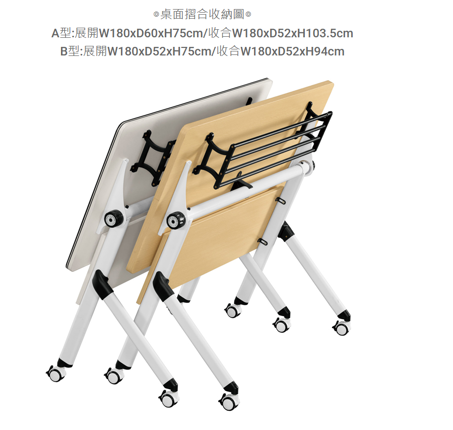 A1587-6 蘇菲亞6尺折疊會議桌 白橡B型 桌面180*40公分