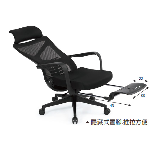 椅背:尼龍加纖射出成型.線控可任意角度、