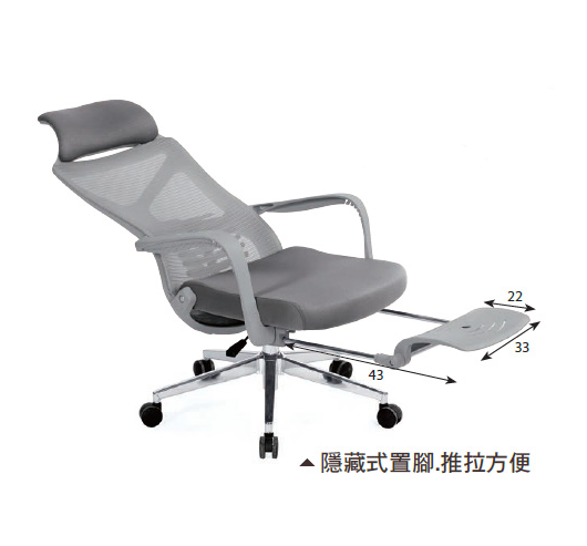 椅背:尼龍加纖射出成型.線控可任意角度、