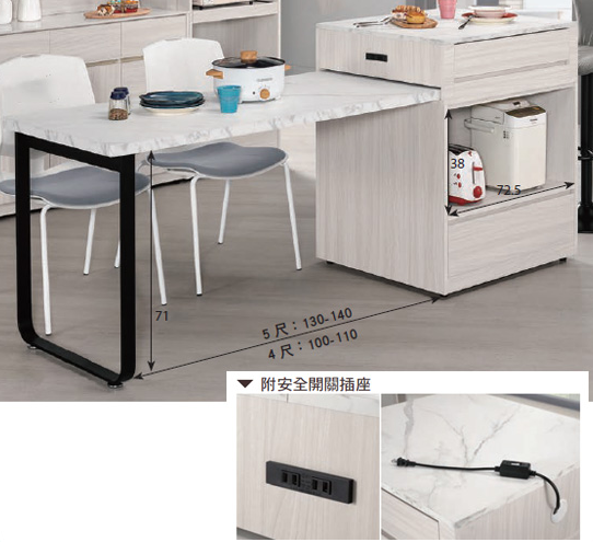 A1683-2 克萊格4尺仿石面中島型多功能餐桌櫃(A型) ⊙附活動隔板1片、 ⊙附插座、