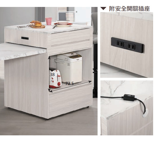 採用仿大理石美耐皿木心板材質.具高溫耐刮磨特性、