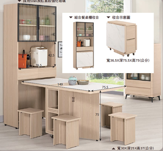 桌面 採用仿大理石紋EO美耐皿材質具耐高溫耐刮磨之特性、