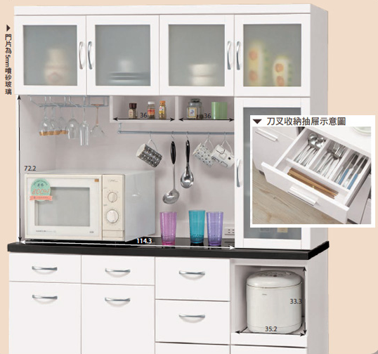 (附活動隔板1大2小片) (附刀叉收納抽屜)