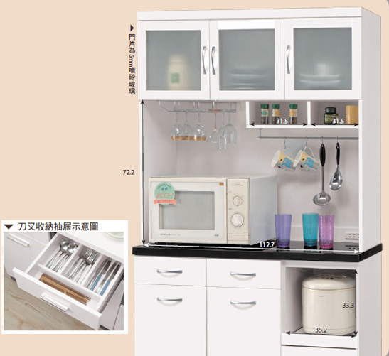 (附活動隔板1片) (附刀叉收納抽屜)