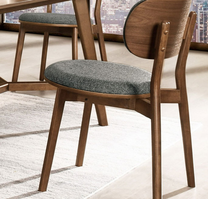 椅背 曲木板貼胡桃木實木皮+麻布+高密度泡棉