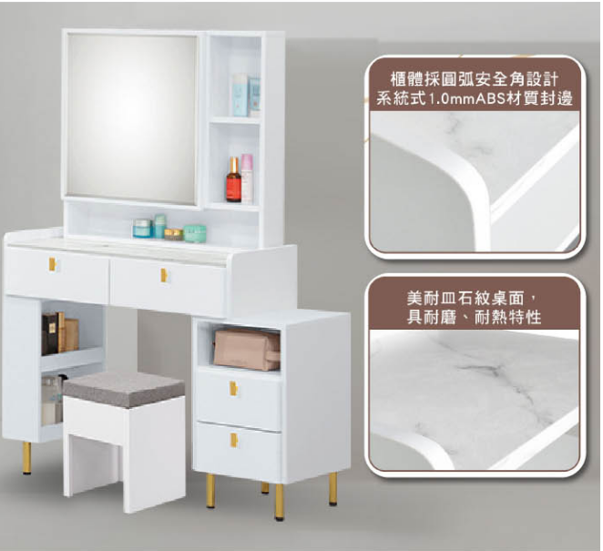A200-02赫拉2.7尺伸縮鏡台(含椅)二抽櫃與側腳可左右擺放