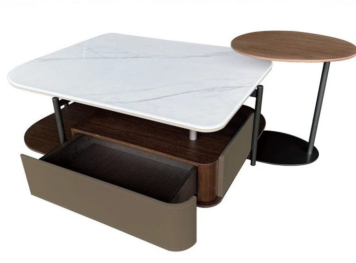 大茶几採天然石基底,經人工微晶石紋美化處理、
