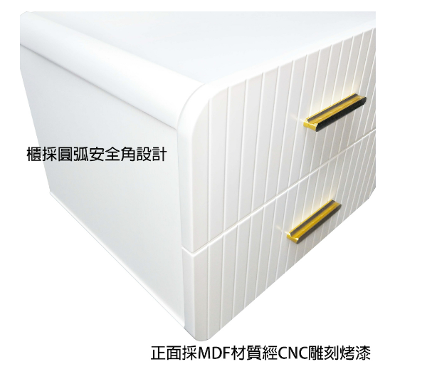 正面:MDF材質經CNC雕刻,白色烤漆全包覆處理
