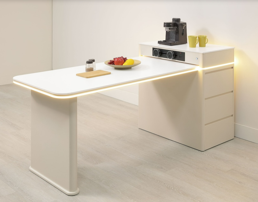 岩板伸縮島台桌,中島、餐桌一體設計,儲物收納多功能,完美搭配餐廳環境。