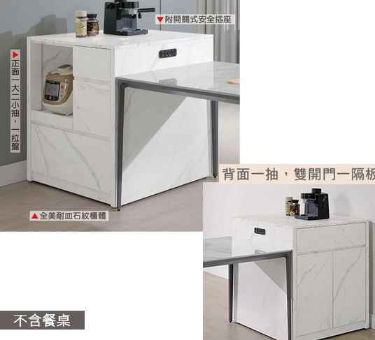 A級環保木心板包含抽牆,耐磨石紋美耐皿材質、