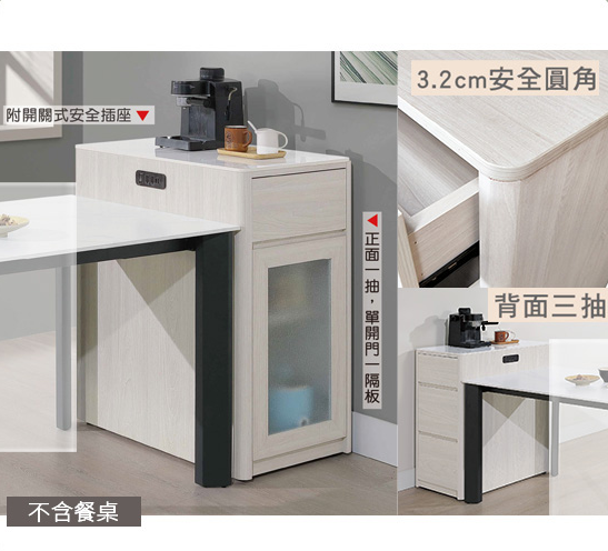 採1.0mm系統式ABS封邊,櫃體採3.2cm圓角設計、