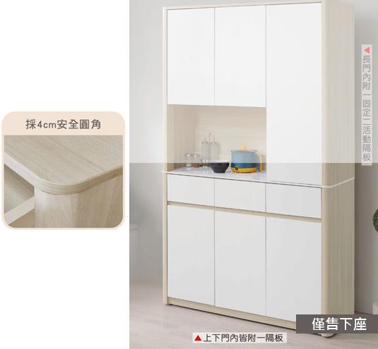 側板採三層木心板圓柱,櫃體採4cm圓角設計、