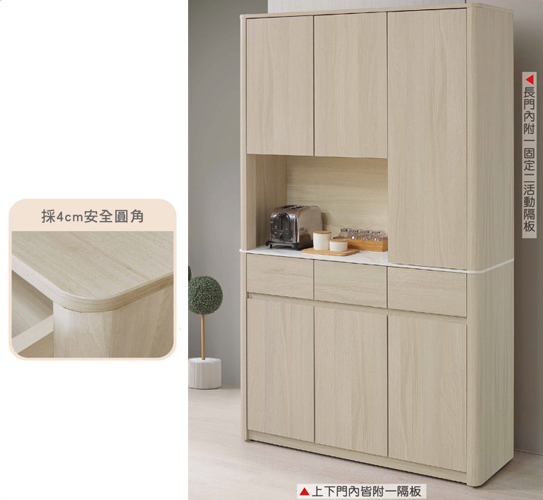 側板採三層木心板圓柱,櫃體採4cm圓角設計、