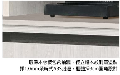 ◆採1.0mm系統式ABS封邊,櫃體採3cm圓角設計