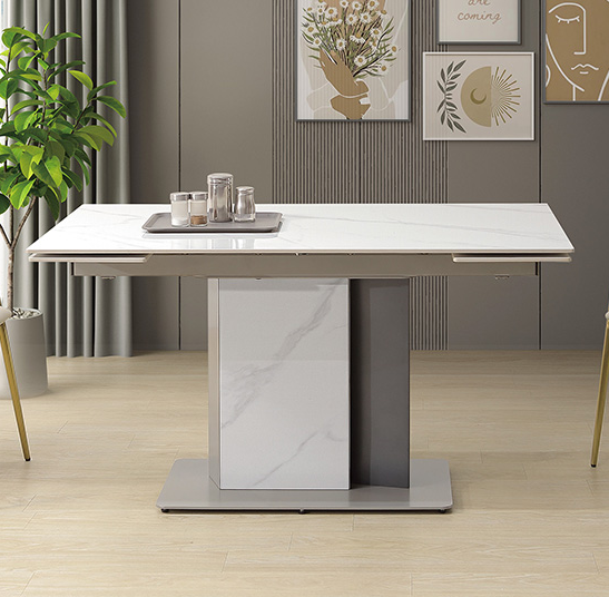 採厚12mm亮面雪山白人工強化岩板桌面、