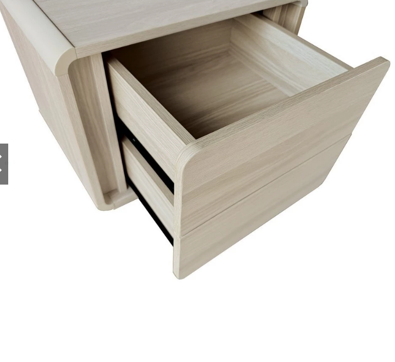 櫃體圓弧導角採實木噴漆處理,抽面圓弧導角設計