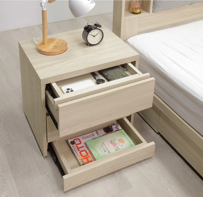 抽屜採用台製鋼珠滑軌,暗抽採三節式滑軌,抽屜可固定