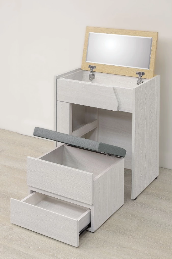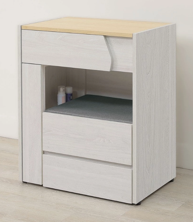 ◆正面、檯面、側板、抽牆採用台灣製造A級環保木心板,採專利技術同調木紋鋼刷壓紋,猶如實木質感