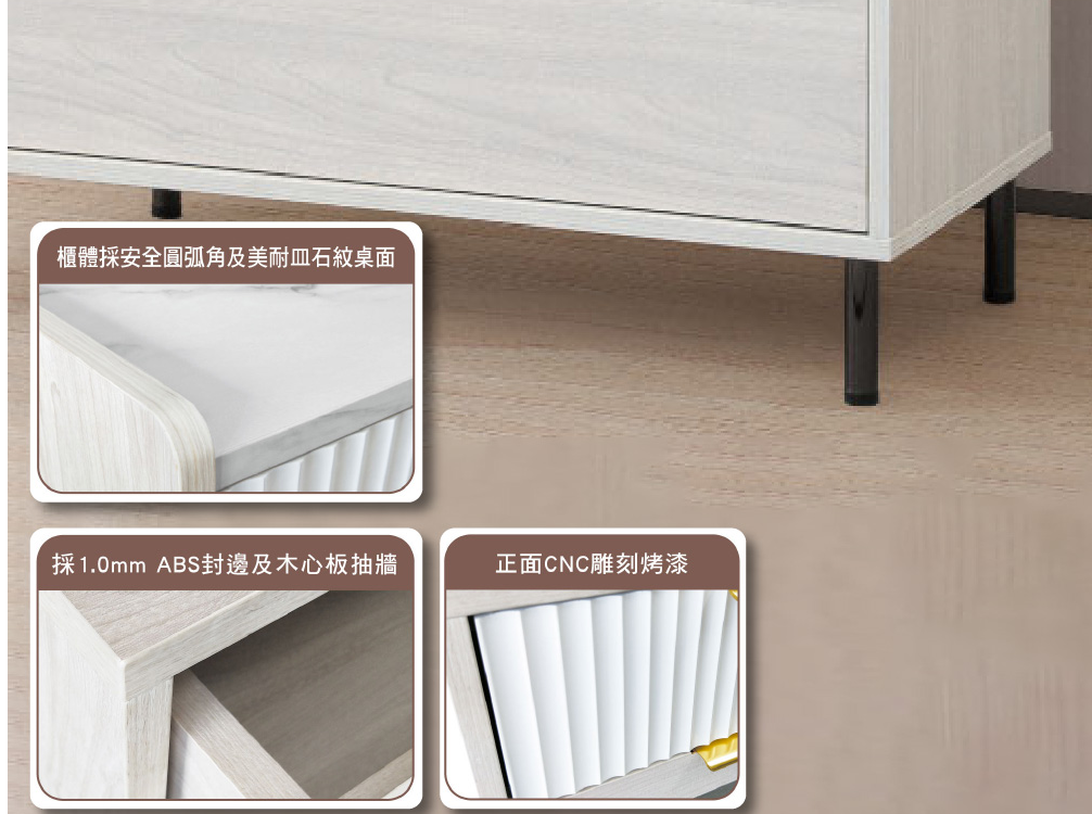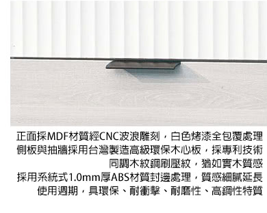 (採用系統櫃1.0mm厚ABS材質封邊處理.質感細膩.延長使用週期.具環保(可回收).耐衝擊.耐磨性.高鋼性特性)