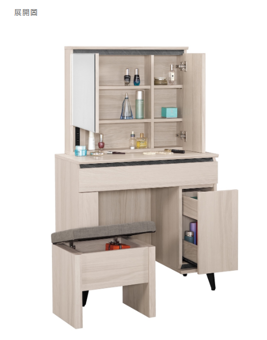 (附化妝椅、椅墊可掀開置物)