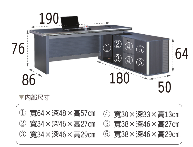桌面:寬190×深80×高76公分