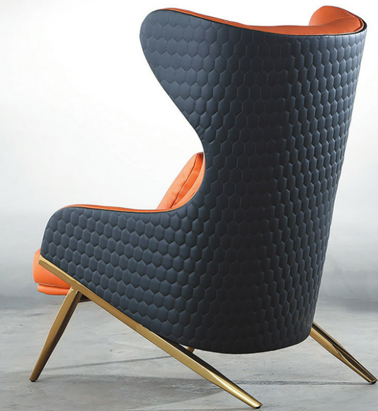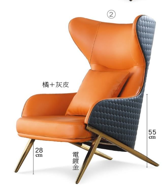 C729-2 SH-1858休閒椅(橘+灰皮.金色腳.含小抱枕)