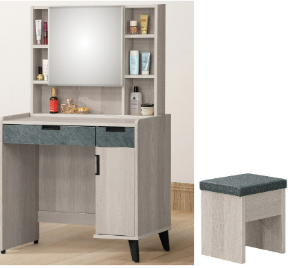 鏡台下座附2抽一門,門片打開無隔板。