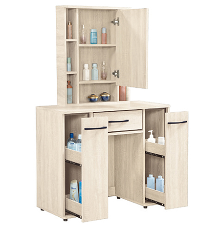*鋼刷耐刮 *國際標準低甲醛防蛀木心板 *抽屜均鋼珠滑軌 *上座門片油壓鉸鏈
