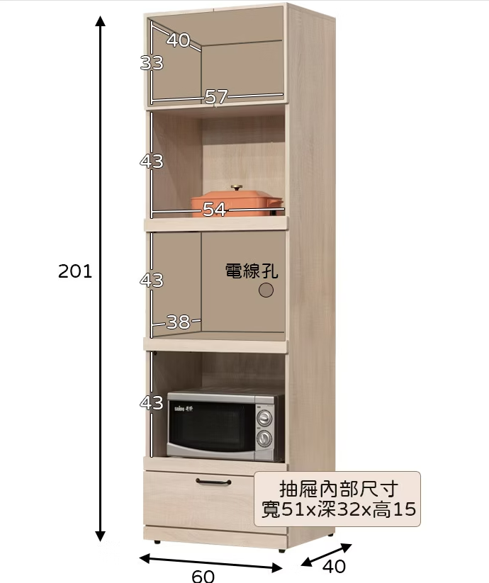 尺寸:寬 60 x 深 40 x 高 201 公分