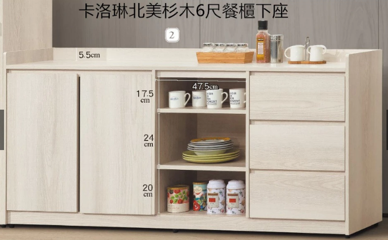 1mm厚封邊、餐櫃附三插座、