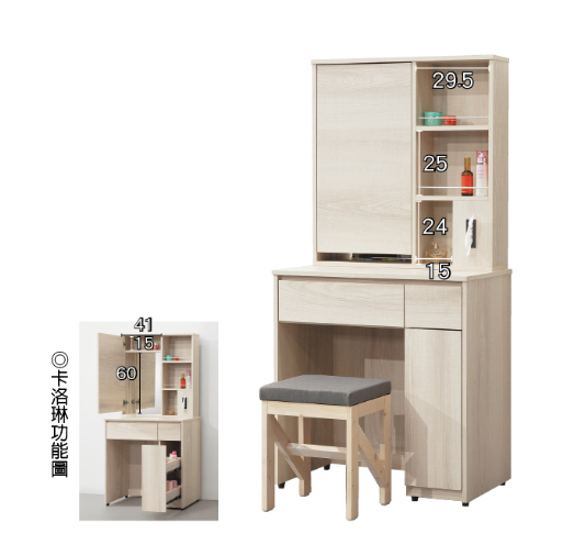 E28-11 卡洛琳北美杉木2.6尺鏡台 含椅