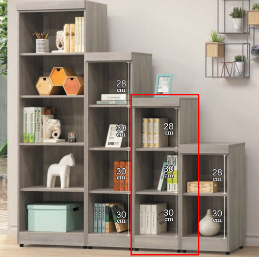 E327-10 階梯式1.3尺書櫃 3格 灰梧桐