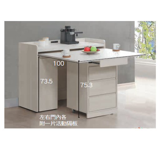 ⊙4顆可固定輪、桌面可收合、