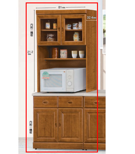 ⊙上下櫃各附一隔板、