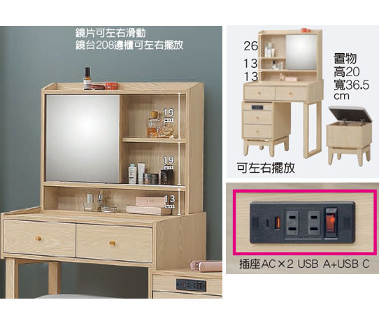 ⊙附插座AC×2USBA+USBC、