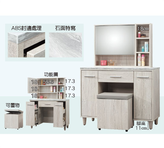 抽屜底板為5mm夾板、桌面美耐皿大理石紋面板、