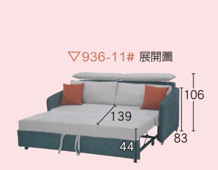 936-11綠+米白沙發床 寬204 X 深89 X 高106 公分(座高44公分.座深72公分.綠+米白麻布)