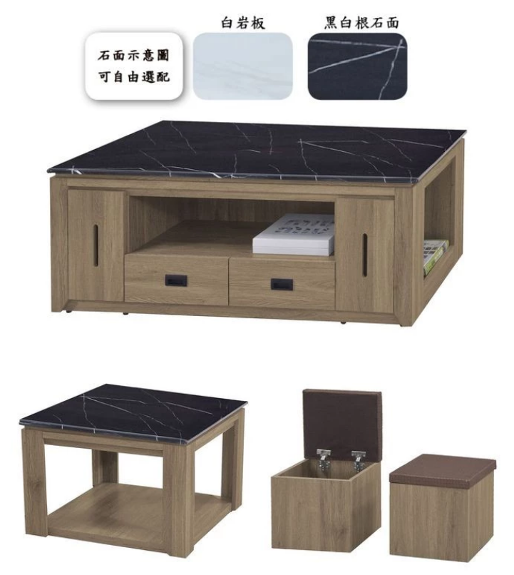 F71-7 魯邦灰橡大茶几 黑白根石面